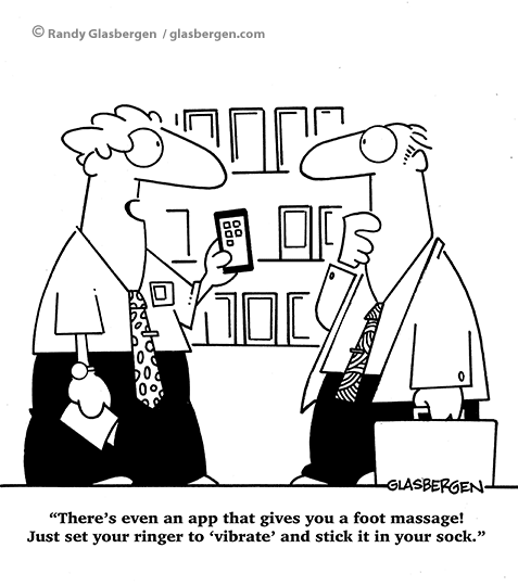 ”இந்த செல்போனிலே கால் மசாஜுக்கு ஆப் இருக்கு. வைப் மோடிலே போட்டுட்டு மிதிச்சாப்போரும்”