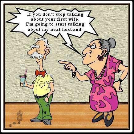 “இதோபார், இப்டியே உன் கடந்தகால மனைவியை பத்தி பேசிட்டே இருந்தே நான் என் வருங்கால புருசனைப்பத்திப் பேச ஆரம்பிச்சிருவேன்”