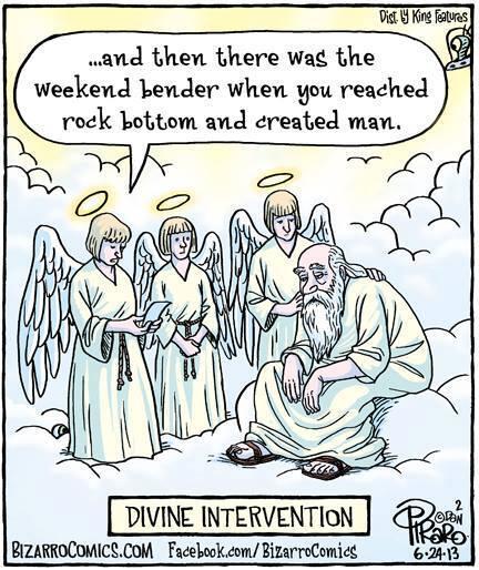 கடவுள் நகைச்சுவைகளை ஆங்கிலத்தில் நிறையவே காண்கிறோம். எல்லாமே தாடிவைத்த வயதான கிழவர். டக்ளஸ் ஆடம்ஸின் The Hitchhiker’s Guide to the Galaxy கதையில் வரும் கடவுள் அமெரிக்க அதிபர் போலிருக்கிறார். அழகான, கம்பீரமான, ஆழ்ந்த குரல்கொண்ட அடிமடையர். ஆகவே ஆழ்ந்த தன்னம்பிக்கைக் கொண்டவராகவும் எல்லாவற்றுக்கும் பொறுப்பேற்றுக்கொள்கிறவராகவும் இருக்கிறார். அவருக்கு பிரபஞ்சம் பற்றி ஒன்றுமே தெரியாது. அவருக்கு எழுதிக் கொடுக்கப்பட்டதைப் படிப்பார்.