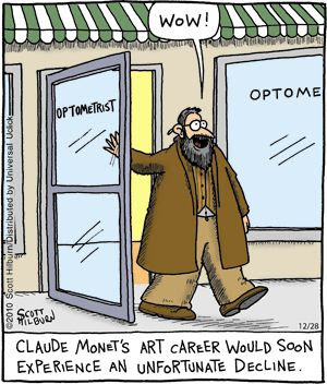 பல ஜோக்குகளை ஓவியம் சார்ந்த சில நுட்பங்கள் தெரியாமல் ரசிக்கமுடியாது. உதாரணமாக எல்லாவற்றையும் மங்கலாகக் காட்டும் இம்ப்ரஷனிஸ்ட் ஓவியர் கிளாட் மோனே. அவர் முதல்முறையாக மூக்குக் கண்ணாடி மாட்டி உலகை யதார்த்தமாகப் பார்த்து பரவசம் அடையும் காட்சியின் பகடி இம்ப்ரஷனிசம் என்றால் என்னவென்று தெரியாதவர்களுக்கு என்னடா இது என்று இருக்கும்.