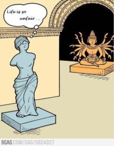 நம்மூர் சிற்பங்களை இப்படி வேடிக்கையாக ஆக்கலாமா என்று நான் யோசிப்பதுண்டு. ஆனால் நம் அர்ச்சகர்களும் ஆலயத்திருப்பணியாளர்களும் அதைச் செய்திருக்கிறார்கள். இடதுபாதம் தூக்கி ஆடும் நடராஜனுக்கு கோவணத்தை கட்டிவிட்டிருக்கிறார்கள். தஞ்சையில் அகோரவீரபத்ரனுக்கு ஆசியன் பெயிண்டில் அண்டர்வேர் வரைந்திருக்கிறார்கள்.
