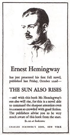 சில விளம்பரங்களைப் பார்த்தால் என்ன இது மொக்கையாக இருக்கிறது என்று தோன்றுகிறது. ஏர்னஸ்ட் ஹெமிங்வே என்றாலே ஸ்பானிஷ் எருதை பச்சைகுத்திக் கொண்ட ஒரு stud என்றுதான் நினைக்கத் தோன்றுகிறது. நியூயார்க்கில் ஒரு ‘பொம்மை’க் கடையில் வெவ்வேறு மெய்யான ஸ்டார் ஆண்களின் ஆண்குறிகளை மாடலாக கொண்டு உருவாக்கப்பட்ட டில்டோக்களை வைத்திருந்தார்கள். [குறியீட்டியல்].ஒரு நண்பர் சொன்னார், முன்பொருநாள் ஒரு அதிதீவிர இலக்கியவாசகி வந்து ஹெமிங்வேயின் மாடல் இருக்குமா என்று கேட்டாள் என்று.அப்பேற்பட்ட ஹெமிங்வேயின் நாவலின் விளம்பரத்தின் லட்சணம் இது. படியவாரிய தலை,டையெல்லாம் கட்டி, பொட்டுவைத்து பொங்கல் சாப்பிடுகிற மாதிரி. விளங்குமா அந்தப்புத்தகம்?
