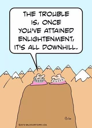 ”ஞானத்தை அடைஞ்சிடலாம். அப்றம் கீழேதான் போயாகணும்”மேற்கத்திய நகைச்சுவைகளின் இன்னொரு டெம்ப்ளேட் தியானம் அல்லது யோகத்தில் ஊடாடும் அன்றாடத்தின் வீச்சு. தியானம் செய்யும்போது அவ்வப்போது ஓரக்கண்ணைத் திறக்காதவர்கள் மிகக்குறைவாகவே இருப்பார்கள். அதைப்பற்றிய பகடிகள் எந்த குருநிலையிலும் புழக்கத்தில் இருக்கும். நித்யாவின் பகடி, ஒரு பெண்ணிடம். “சியாமளா, தைரியமாக தியானம் செய். முந்தானையை கவனித்துக்கொள்ள தியானமரபில் ஒரு தனி தெய்வம் உண்டு”