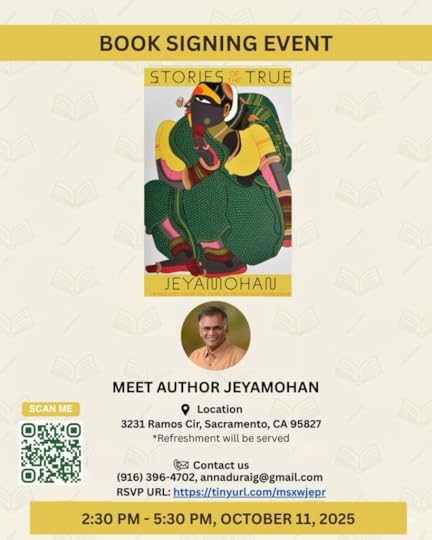 என் அறம் கதைகளின் ஆங்கில மொழியாக்கம் Stories of the true அமெரிக்க வெளியீடாக வந்துள்ளது. புத்தகக் கையெழுத்து மற்றும் உரையாடல் அரங்கு இது.