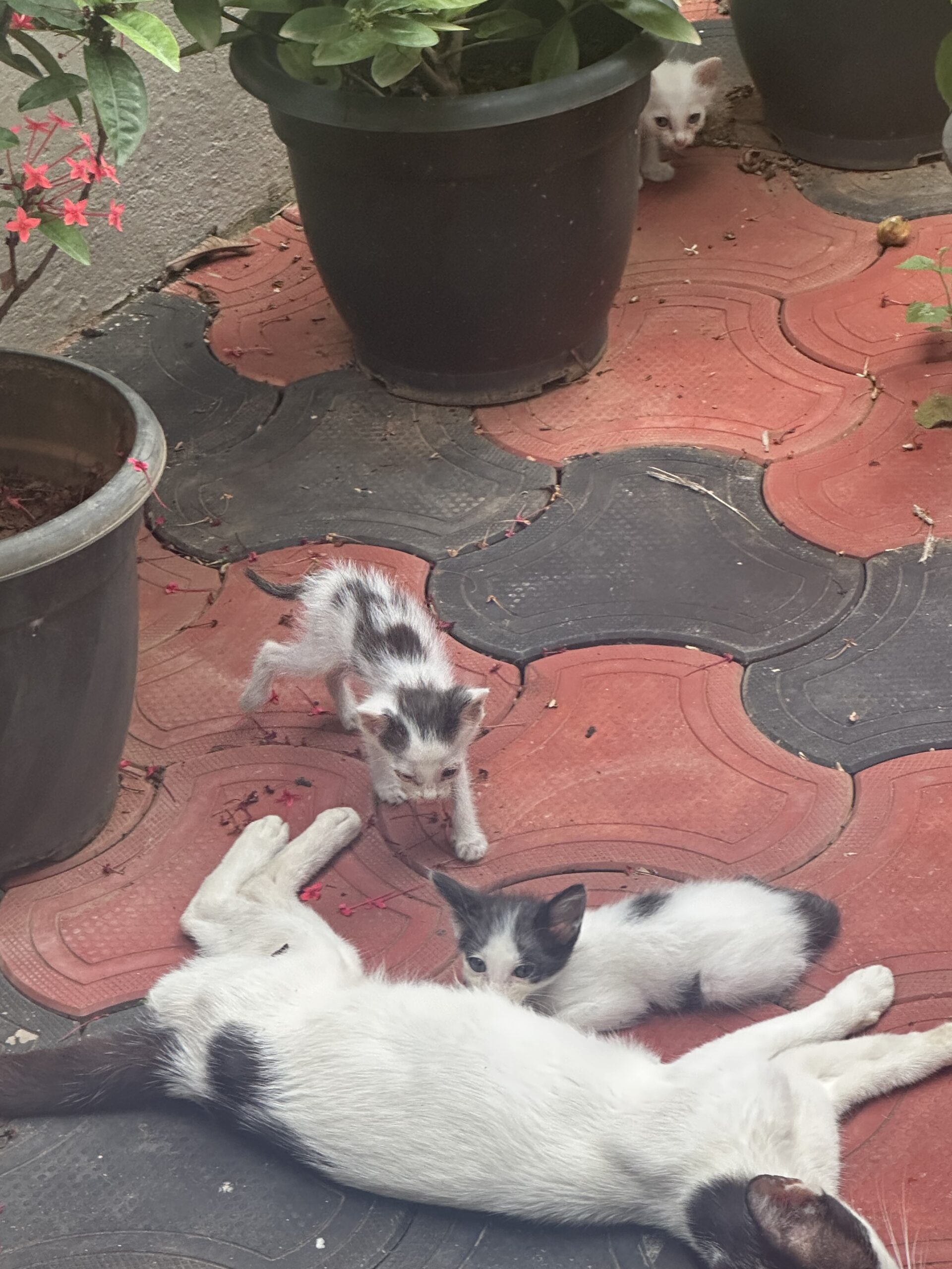 நான் செல்பேசியில் காணொளி பதிவுசெய்தேன். செல்பேசி நெருங்குவதைக் கண்டபின் மூன்றாம் குட்டி எழுந்து அப்பால் ஒளிந்தது. ஆனால் அங்கே நின்று நான் என்ன செய்கிறேன் என்று பார்த்துக் கொண்டிருந்தது. நான் ஒன்றும் தவறாகச் செய்யவில்லை என புரிந்துகொண்டதும் முதலில் அதுதான் திரும்ப வந்தது. அடுத்து மற்ற பூனைக்குட்டிகள். கடைசியாக வந்தது முதலில் சென்றதுதான்.