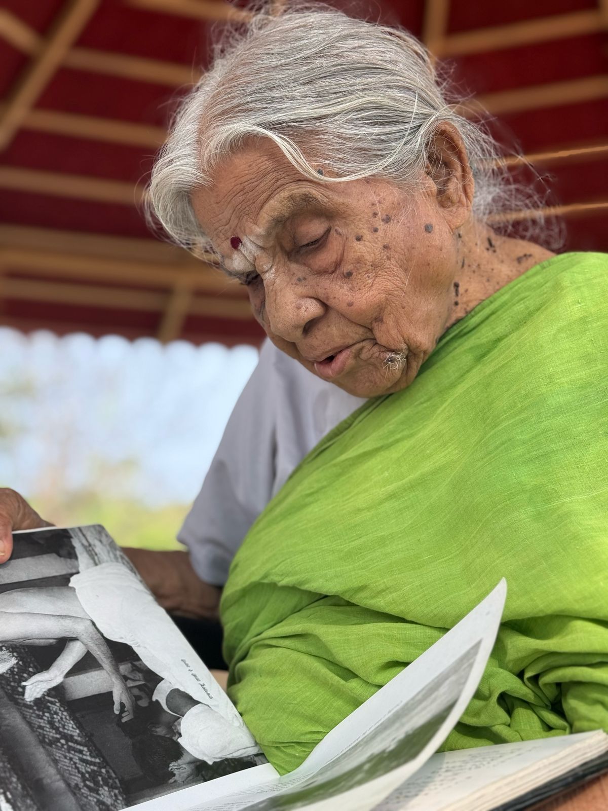 நாய்களோடு நடைபயணம் சென்று திரும்பிய சத்யாக்கா அனைவரையும் சாப்பிட அழைத்தார்கள். சிவா அண்ணனும் நரேனும் , செந்தில் அண்ணனும் அம்மாவிற்கு இருபுறமும் காவலாக பிடித்து கொண்டு அம்மாவோடு நடந்து கூடத்திற்கு வந்தோம். திரும்பவும் வினோபாவின் புத்தகத்தை எடுத்து அதன் புகைப்படங்களை பார்த்து அதன் வரலாற்று முக்கியத்துவத்தை சொல்லிக்கொண்டிருந்தார்கள். அந்த கூடம் முழுவதும் வரலாறு புகைபட சட்டகங்களாக உறைந்து அமைந்திருந்தது. அக்கா அந்த புகைப்படங்களையும் அதன் சூழலையும் விளக்கமாக சொன்னார்கள். நேரு, வந்தது, மார்ட்டின் லூதர் கிங் ஜீனியர் வந்தது, வினோபா வின் யாத்திரை, ஜெகந்நாதன் அய்யாவின் போராட்ட நினைவுகள், லாப்டி, பூமி தான இயக்கம், காமராஜர் பற்றி, அய்யா, கைத்தான் அவர்கள், காந்தி கிராம கட்டுமானம், மாற்று நோபல் பரிசு பெற்றது என்பதை எல்லாம் மிக மிக சாதாரணமாக சொல்லிக்கொண்டிருந்தார்கள்.