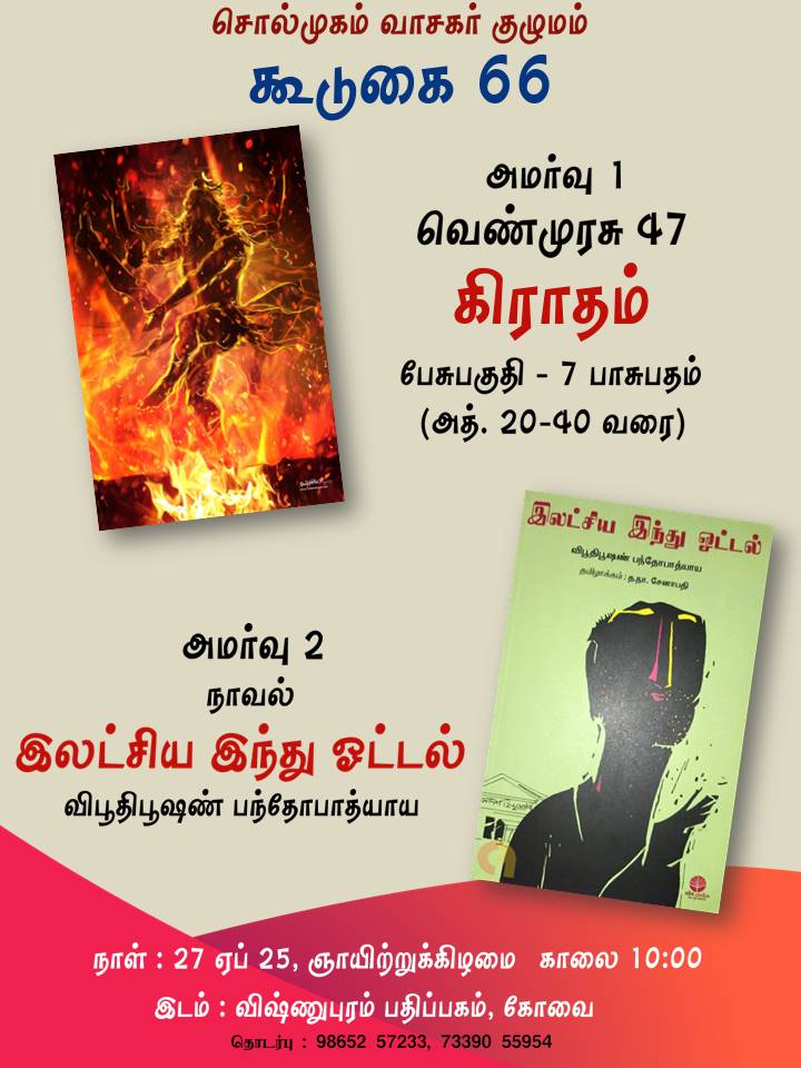 கோவை சொல்முகம் வாசகர் குழுமம் ஒருங்கிணைக்கும் 66வது இலக்கிய கூடுகை வரும் ஞாயிறன்று கோவையில் நிகழவுள்ளது.