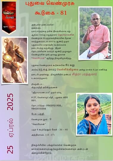 மகாபாரதத்தை நவீன இலக்கியம் மறு ஆக்கம் செய்து எழுத்தாளர் ஜெயமோகனின் வெண்முரசு பெருநாவல்நிரையின் மீதான கலந்துரையாடல் 2017ம் ஆண்டு முதல் புதுவையில் மாதாந்திர கூடுகையாக நடைபெற்று வருகிறது. இதன் தொடர்ச்சியாக 2025ம் ஆண்டு முழுவதும் வெண்முரசின் ஒன்பதாவது நூலான “வெய்யோன்” குறித்து நிகழவிருக்கிறது.