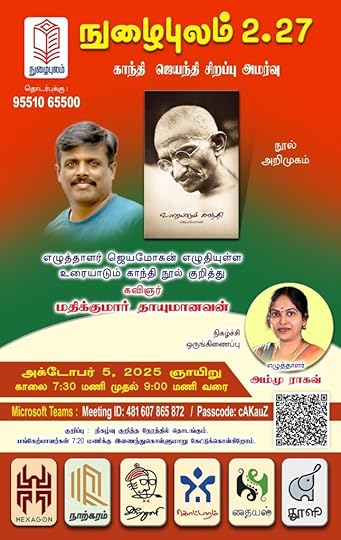 காந்தியைப் பற்றிய என் கட்டுரைகள் அடங்கிய உரையாடும் காந்தி என்னும் நூலைப் பற்றிய இணைய உரையாடல். அக்டோபர் 5, 2025. காலை 730