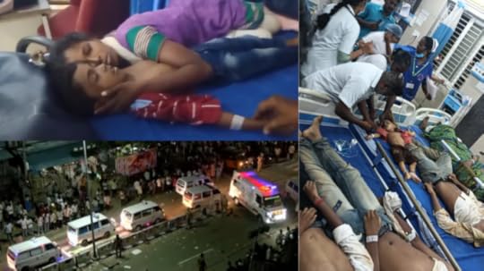 நான் கவனிப்பதும், சொல்லவிரும்புவதும் வேறு. கைக்குழந்தையுடன் அங்கு சென்றபெண்களின் முகங்களை தொலைக்காட்சியில் பார்க்கும் போது வரும் கடுமையான ஒவ்வாமை. ஒரு பெண் தன்னுடைய கைக்குழந்தையுடன் சென்றாள். கைக்குழந்தை கீழே போடப்பட்டு செத்துப் போய்விட்டது. அந்தப்பெண் விஜய் தன்னை பார்க்க வரவேண்டும், வந்து பார்க்க வேண்டும் என்றுதான் திரும்பத் திரும்பச் சொல்கிறாளே ஒழிய குழந்தை பற்றி பேசுவதில்லை. அரசு தனக்கு பணம் அனுப்ப வேண்டும் என்று இறந்தவர்களின் உறவினர்கள் கூச்சல் இடுகிறார்கள். எவருமே தங்கள் பிழை என எதையும் உணர்வதாக தெரியவில்லை. இந்த அறியாமைதான் பெரும் ஒவ்வாமையை உருவாக்குகிறது. அரிய மானுட உயிர்கள் என நாம் நினைக்கிறோம், அவர்கள் அப்படி நினைப்பதாகவே தெரியவில்லை.