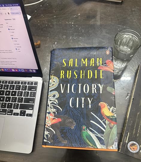 மலையாள எழுத்தாளர் பி கே பாலகிருஷ்ணன் ஒரு பேட்டியில் சொன்ன வரி சட்டென்று இந்த பின்னிரவில் நினைவுக்கு வந்தது. ஒரு படைப்பை படித்து முடித்த கணம் அந்த மேஜை எப்படி இருக்கிறது என்பது எப்படியோ அந்த படைப்பு உருவாக்கும் மனநிலையுடன் சம்பந்தப்பட்டது. சல்மான் ருஷ்தியின் Victory City நாவலைப் படித்து முடித்தவுடன் என்னுடைய மேஜையை ஒரு புகைப்படம் எடுத்துக் கொள்ள வேண்டும் என்று எனக்கு தோன்றியது. அருண்மொழி ஊரில் இல்லை. அவள் வீட்டில் இல்லாத போது வீடு எப்படி இருக்குமோ அப்படித்தான் மேஜை இருக்கிறது. அதாவது ஒட்டுமொத்தமாக ஒரு திறந்த குப்பைக் கூடை. அதன் நடுவே இந்தப் புத்தகம். மிக அழகாக தயாரிக்கப்பட்ட புத்தகம் பற்றி எனக்கு சாதகமாக ஏதேனும் சொல்வதற்கு இருக்கிறது என்றால் முதன்மையாக அது இது மட்டும்தான்.