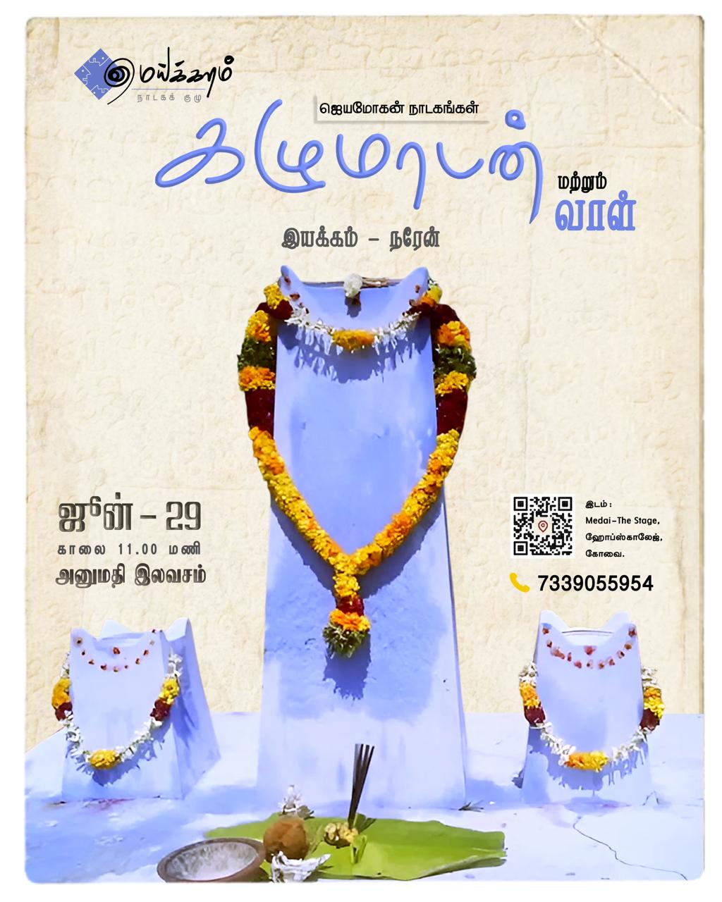 கோவை மெய்க்களம் நாடகக் குழு தங்களின் ‘வாள்’ மற்றும் ‘கழுமாடன்’ நாடகங்களை மீண்டும் கோவையில் வரும் ஜூன் 29ம் தேதி, ஞாயிற்றுக்கிழமை அரங்கேற்ற இருக்கிறது.
