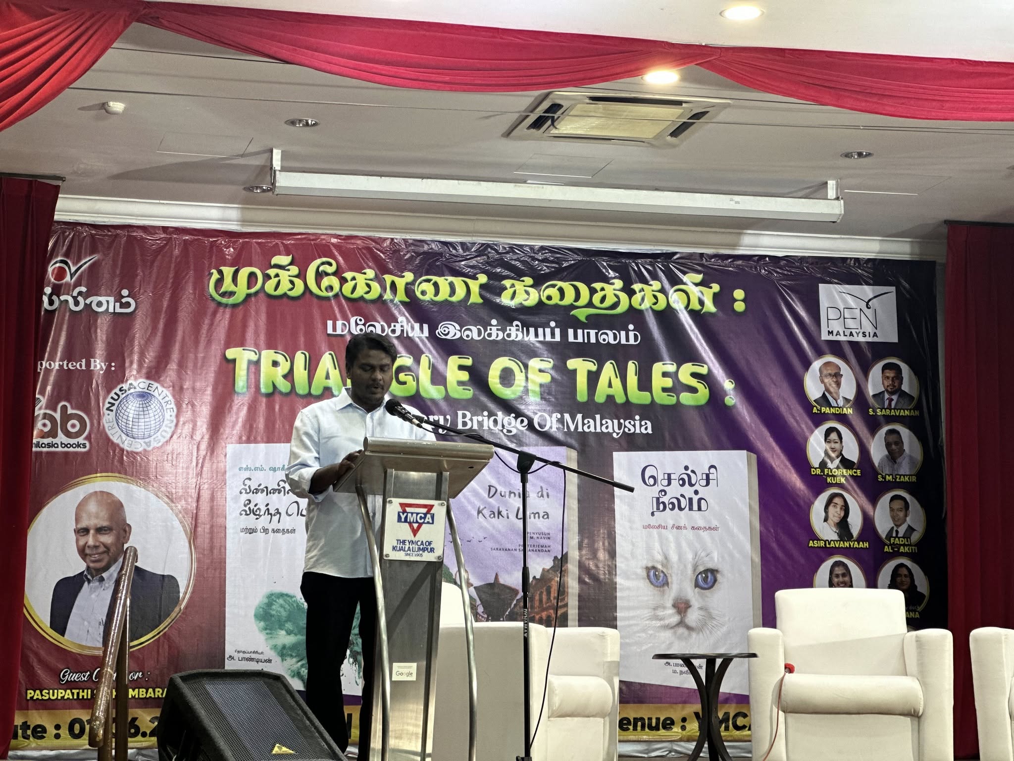 ஞாயிறு நடந்த முடிந்த முக்கோண கதைகள் மலேசிய இலக்கியச் சூழலில் ஒரு வரலாறுதான். மூவின எழுத்தாளர்களும் ஒன்றிணைந்த இலக்கிய நிகழ்ச்சி ஒன்று மலேசியாவில் நடந்ததில்லை. அப்படி கலந்துரையாடல் நடந்திருந்தாலும் அதை வரலாற்றில் எப்போதும் நினைவுக்கூறும் வகையில் மொழிபெயர்ப்பு நூல்கள் வெளியிடப்பட்டதில்லை. இந்த விழாவில் மூன்று நூல்கள் வெளியீடு கண்டன. எஸ்.எம்.ஷாகீரின் சிறுகதைகளும் சீன சிறுகதைகளும் தமிழுக்கும் தமிழில் பத்து சிறுகதைகள் மலாய் மொழிக்கும் என மொழிபெயர்க்கப்பட்டு நூலாகப் பதிப்பிக்கப்பட்டன. கிட்டத்தட்ட ஈராண்டு உழைப்பு. இதற்குப்பின்னால் பலரது பங்களிப்பு உண்டு. அ. பாண்டியன், ச. சரவணன் ஆகியோர் அதில் முதன்மையானவர்கள். விஸ்வநாதன், அரவின் குமார், சாலினி, சல்மா தினேஸ்வரி, ஆசிர் லாவண்யா, கி. இளம்பூரணன் என பலரும் முதன் முறையாக மொழிபெயர்ப்பில் முயன்று அதை நிறைவாகவும் செய்துள்ளனர்.