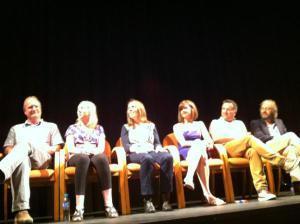 The lovely girls of Ossett High School were assigned to look after me and I spent some time chatting with them and answering some challenging questions (which past life would you most want to have lived? I went with Shakespeare’s right hand man and Euripedes – I was put on the spot, OK!) before going into the packed auditorium where I faced a stage with six spot-lit seats. Somewhat intimidating.