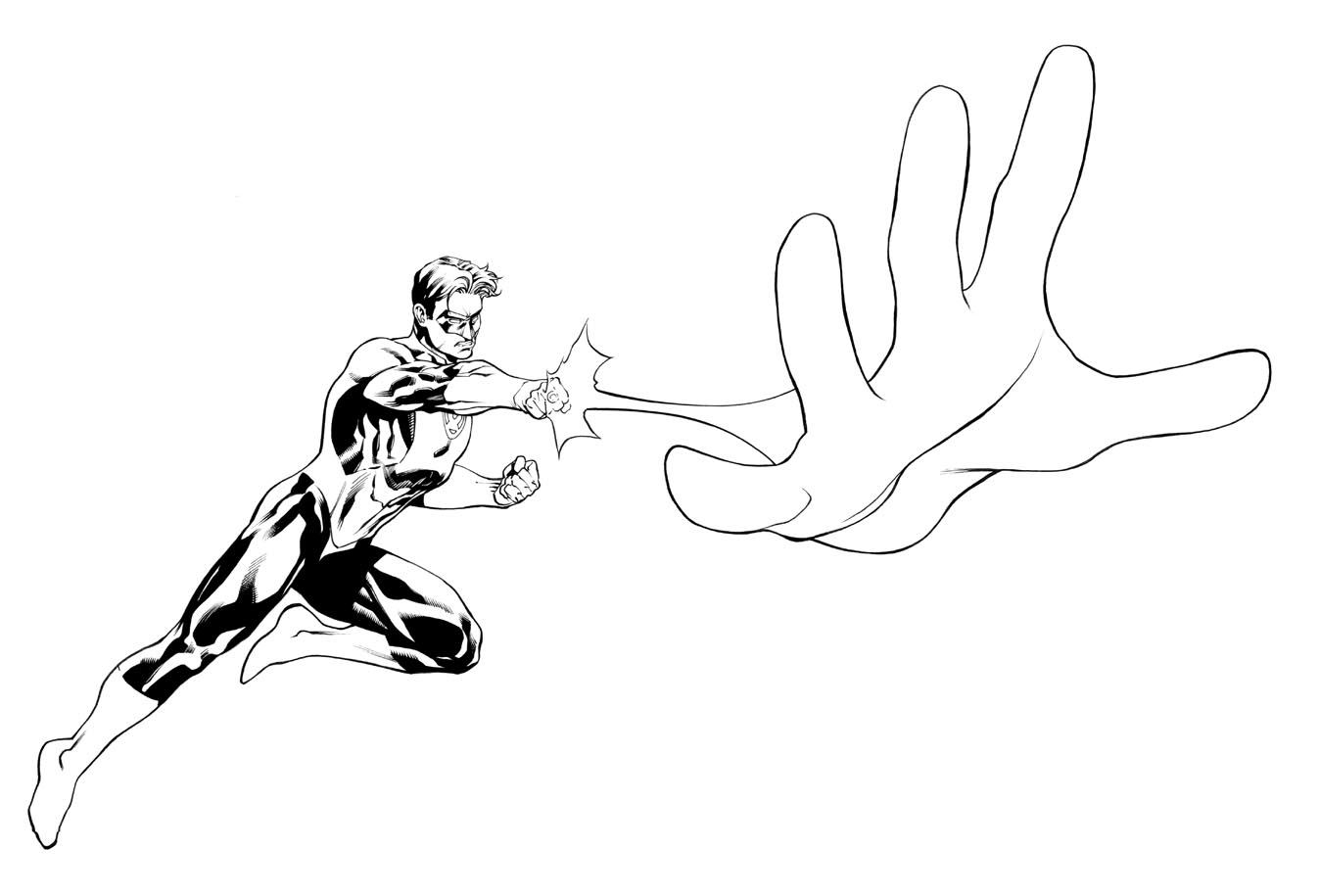 Another Green Lantern. Man, I love this character and that his power is only limited by his will power and imagination. Gigantic hands...that's all you got Hal? Seriously. sigh.