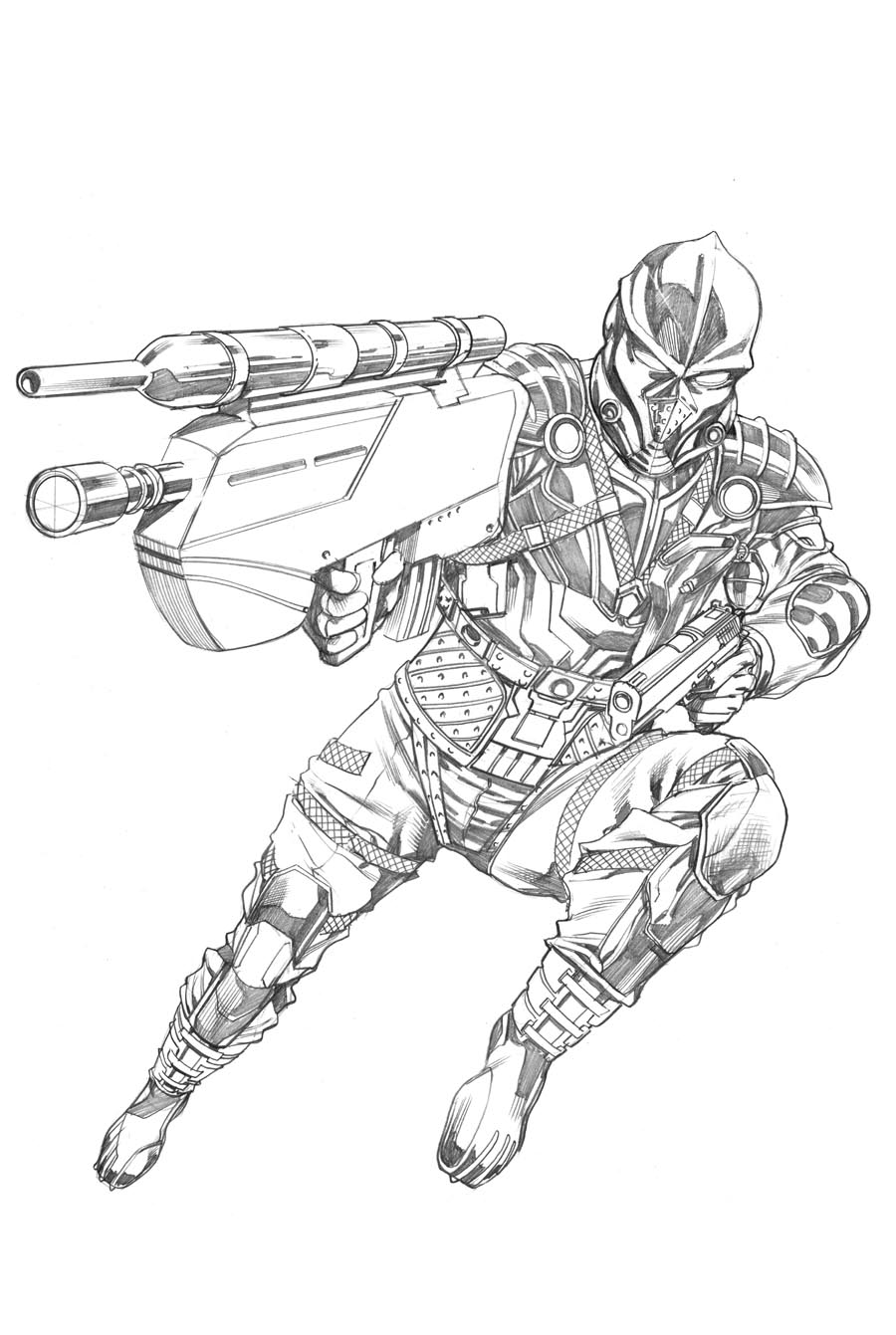 Mainframe, again this was a character I've never drawn before. As it turns out, this was one of my favorite pieces that I did for the GI JOE: Battleground game. Just the action, proportions and over all feel was very "GI JOE" to me.