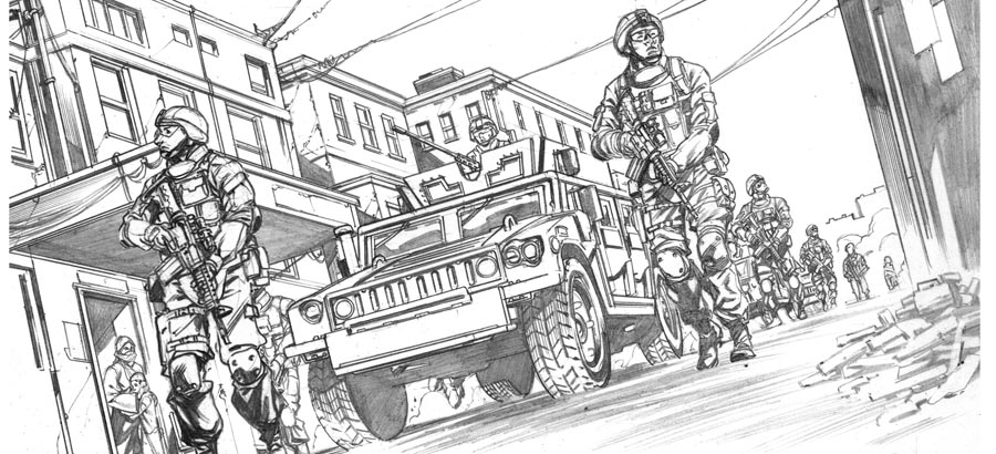 I'm currently working on a mini-series for the America's Army comic book. It's all done through the U.S. Army and published by IDW, but made available for free online! The main title just had issue #12 come out, which I was able to do the cover for! Anyone that has enjoyed my work on GI JOE and likes straight up military stories should check out the series, and the upcoming mini-series America's Army: Officers that I'm doing the interior art on as well.