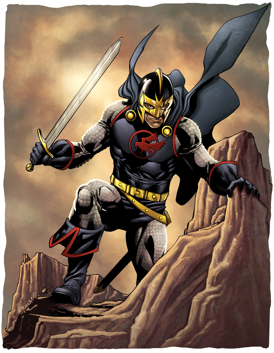 So for this JSA piece, I was right after Mike McKone who drew Starman. I drew Wildcat, and you can see that there are a number of other characters ready to be filled in by other artists throughout the show.