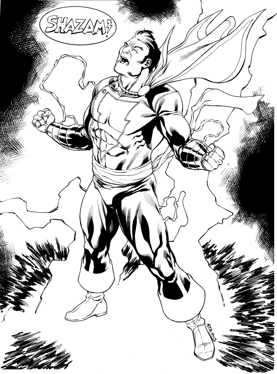 Here is the second half of that Black Adam commission. This was loads of fun to do, I've only drawn Black Adam once before, and Captain Marvel just a few times for the DC Universe online game. I did a few of the animated cut scenes for that game and the Captain Marvel bit was one of them.
