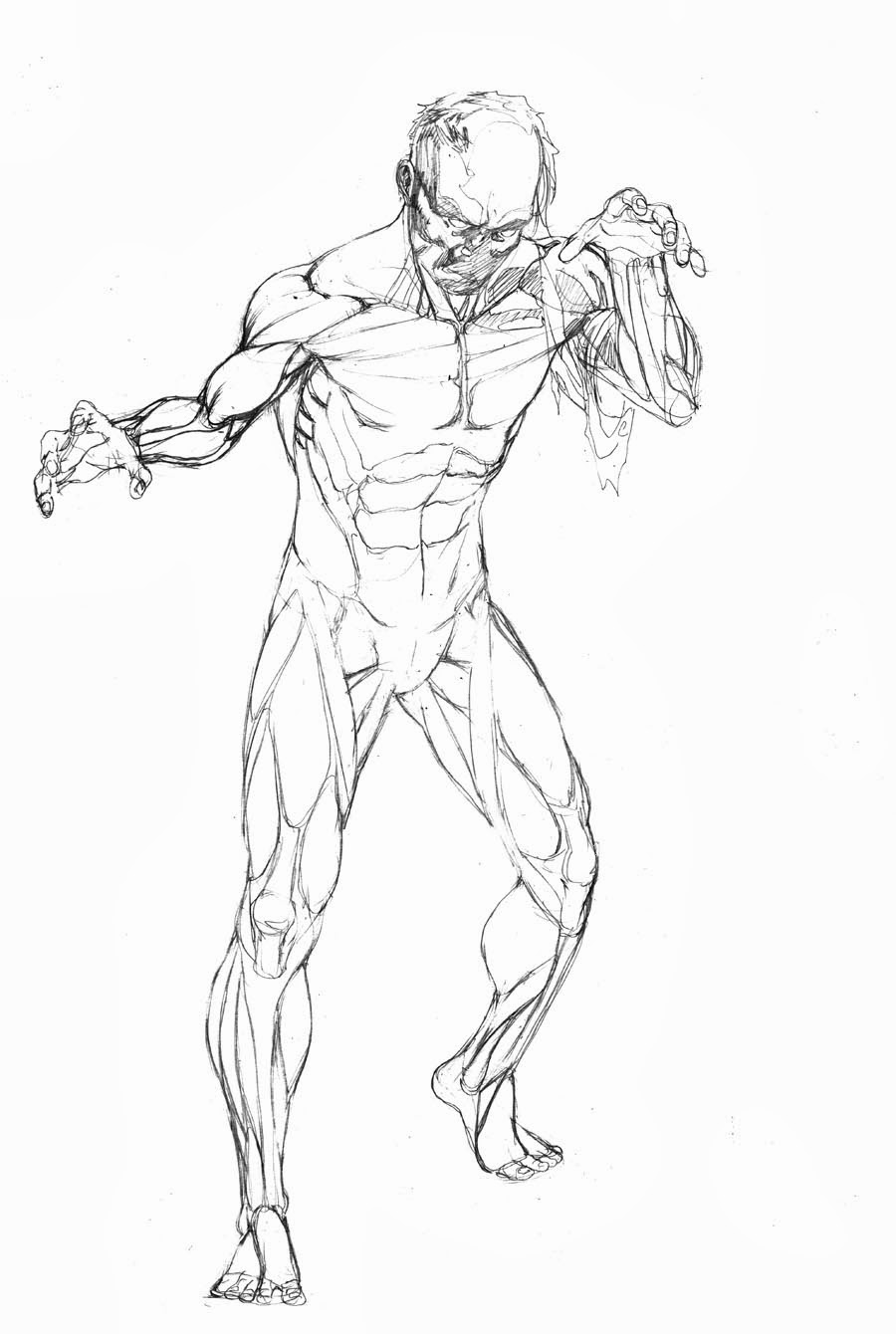 Okay, this is the last zombie I promise. I wanted to show a bit of process on this one. Even though most of this guy is covered in ratty clothes and in shadow, I start my figures with the same understructure. Drawing through the forms, and nailing down the anatomy as best as I can. Usually I wont go into quite this much detail, but you can see from my underdrawing how knowing the anatomy and muscles of the body, then informs how the clothing and shadows fall across the body.