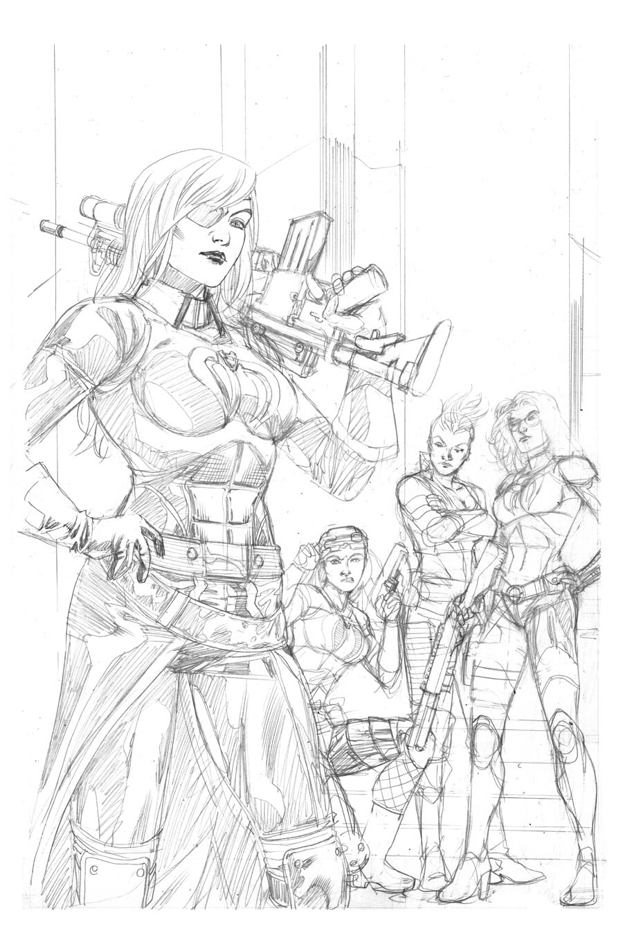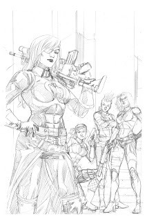 I've recently finished doing the GI JOE vs Cobra Cover for the comic the GI JOE Collector's Club produces each year for the Joe Con. This cover was for issue #6, and a spotlight of the new character Crimson Asp. The cover first started as Crimson Asp, Baroness and Zarana on the cover. After my initial sketches I was told to add Munitia, another female Cobra character.