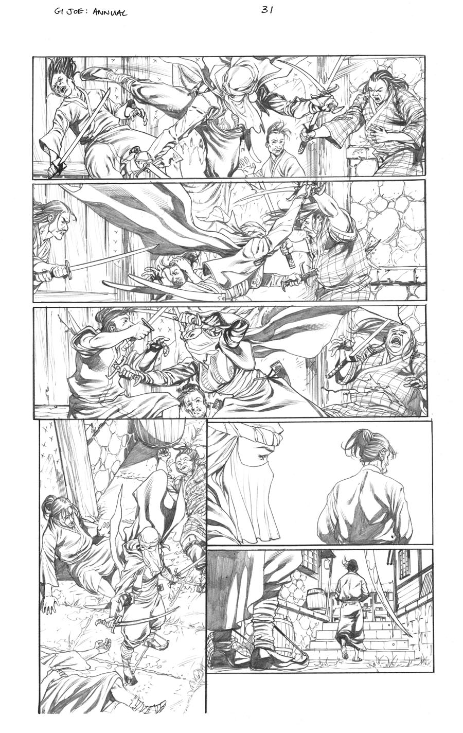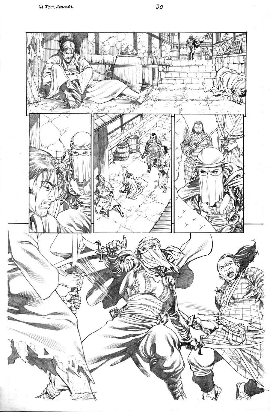 This is a brilliant idea for a commission for any serious GI JOE fan. I've had this one to finish for a very long time, partly because it's such a different kind of commission. In the old Marvel GI JOE series, there was a great panel that was giving some back story to the Arashikage clan and origin stories for Snake Eyes and Storm Shadow.
