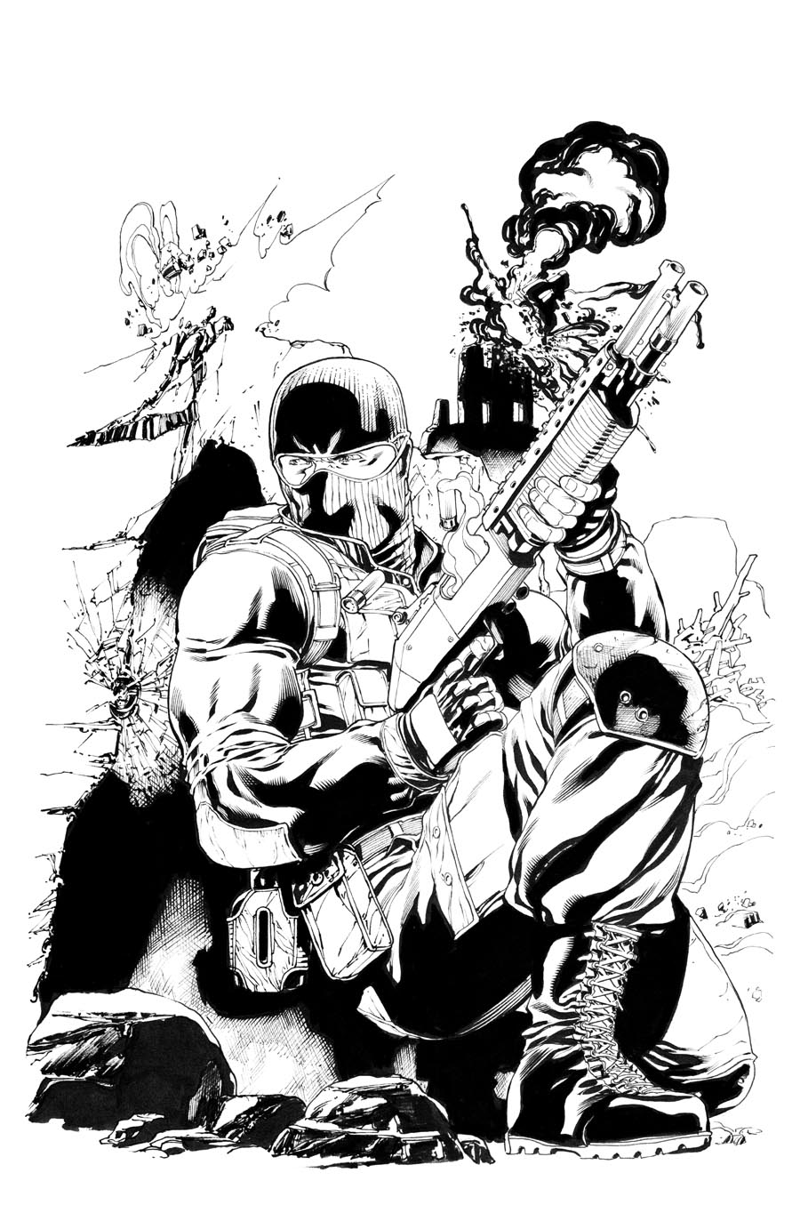 Here's the inks for this cover I've just done for GI Joe's new team. I've posted the layouts and pencils just before this. I'll post the colors Simon did next.