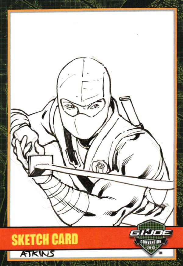 I was able to attend the GI JOE con in Indianapolis a couple of weeks ago. The convention ran some sketch cards, unfortunately it wasn't highly promoted. I think a lot of attendees and even some staff didn't realize that I was going to be there. So it wasnt until the last day that people starting coming to my table asking if I could draw on their blank cards. I was the only artist that set up at the convention. So I was able to get a few done at the show and take a couple back with me to do as warm ups for the day.