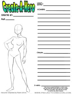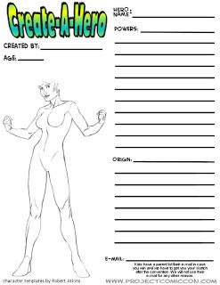 Also, a convention in St. Louis called Project Comic Con is doing a great "Create your own Super hero" activity for kids this year. The night before the con there will be a family oriented get together and kids will have a contest to create a new superhero. Winners of the contest will have their character drawn out by professional artists, including myself!