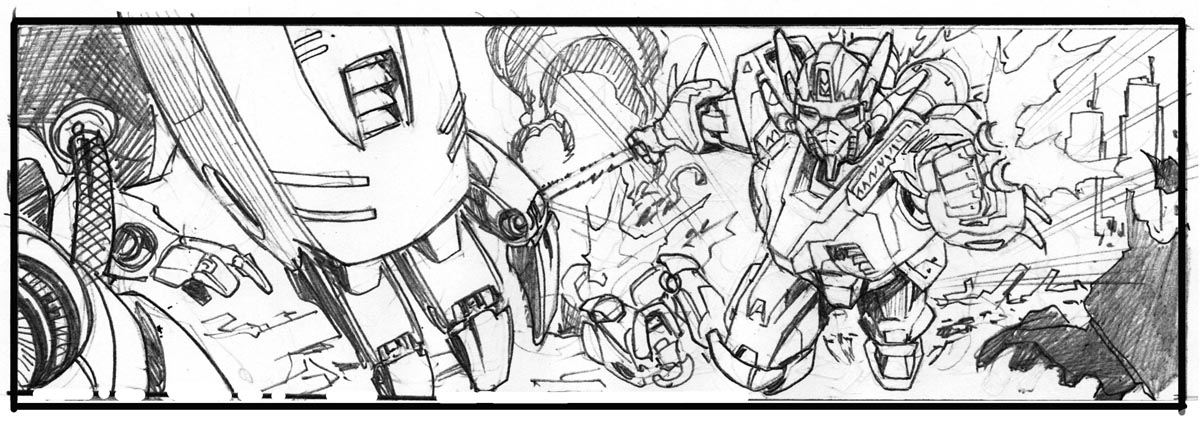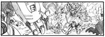 I've been a long time fan of large robots or mobile suits ranging from Voltron to Transformers to every incarnation of Gundam anime. There's just something about it visually that I completely enjoy. As much as I love it, I've rarely taken the chance to draw it. So when told I could draw anything I wanted I went for this.