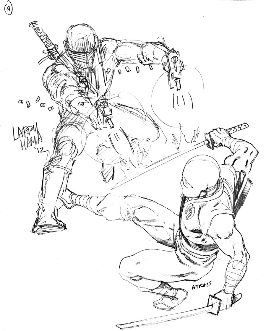 Anyway, they had Larry start this sketch with Snake Eyes, and I did a Storm Shadow as best as I could to fill the space and make it look like they were interacting. Fun idea, and cool to think I got to work on a piece with Larry.