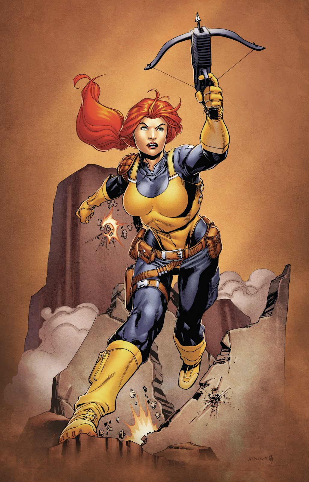 At Joe Con last year I asked Hasbro why we weren't using Lady Jaye in the comics. I was told that considering her specialty is throwing spears at people, that doesn't exactly translate to modern warfare. I think if you can throw exploding spears....then that might still be practical, but maybe she could work on her other skills too.