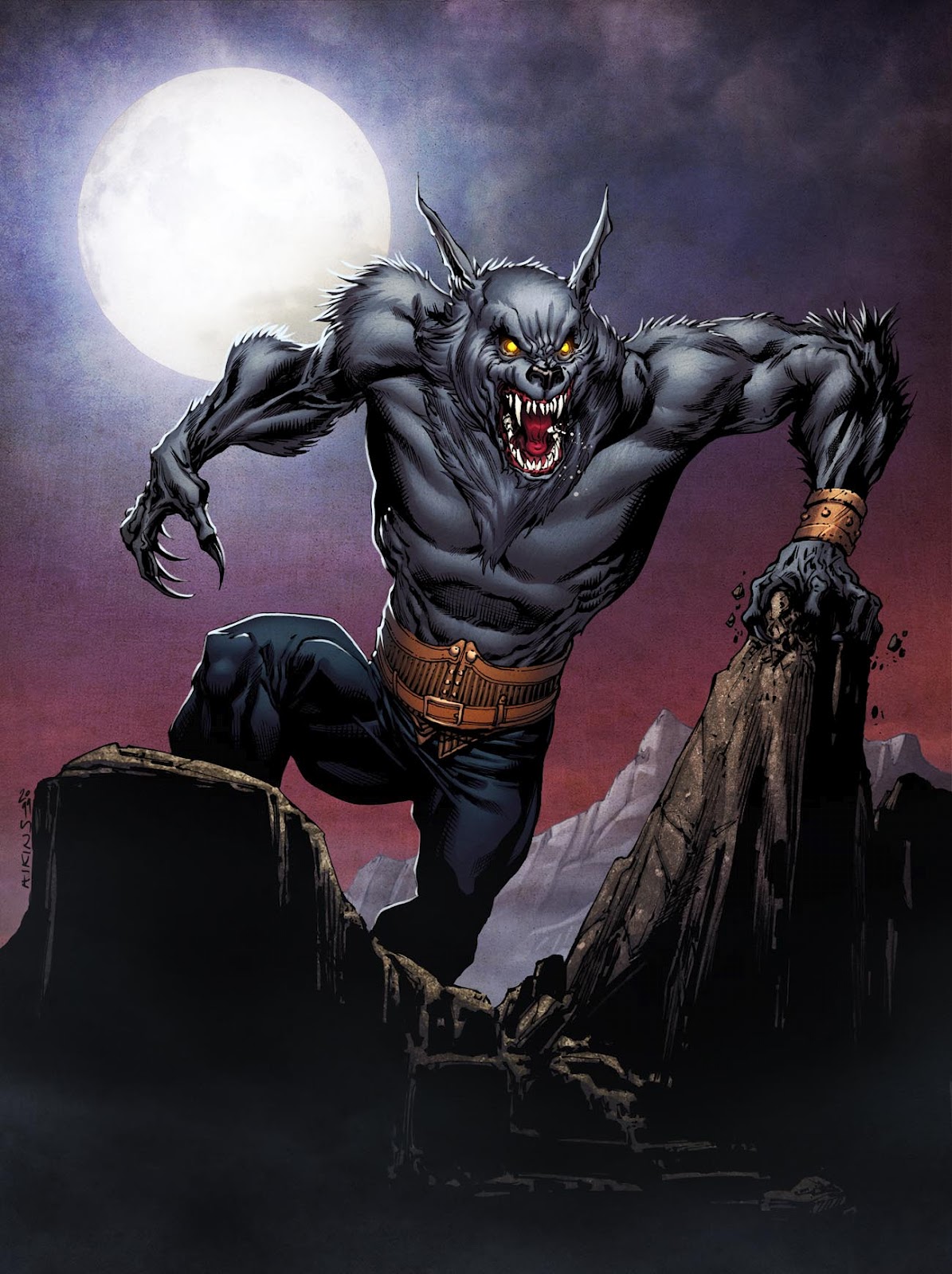 I've only drawn a werewolf kind of character a few times before. There are quite a few different interpretations out there to pull from. I had a lot of fun with this one, I don't get to draw monsters very often. Once again with Simon's colors this really comes to life!