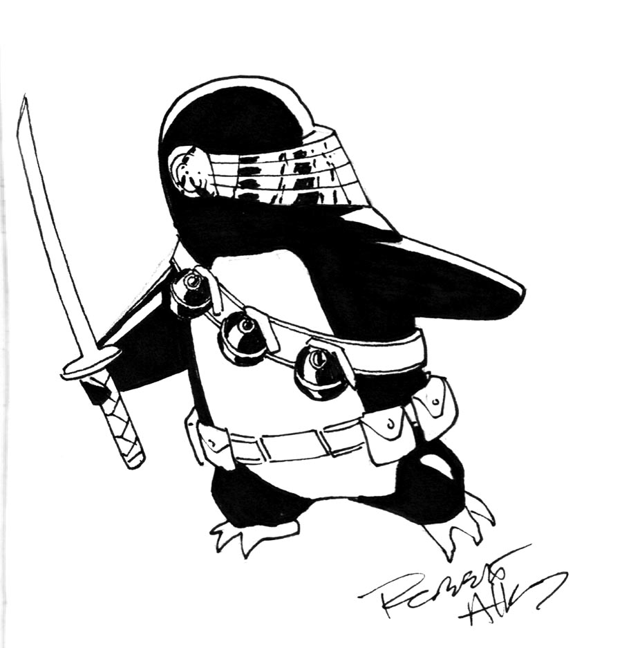 Okay, this is one of those odd con sketch requests. I've mentioned before I generally don't do quick sketches at shows because I don't feel I'm very good at them. But this was for someone that's been very patient waiting for a commission and he just wanted this in his "Superheroes as Penquins" sketchbook.