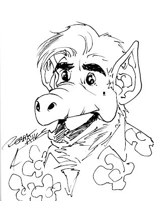 So again, a quick sketch...and again an odd request. I can say however I've never had the chance to draw ALF before. I wish I had some reference when I did this. It's pretty much what I could remember as best as I could. As I was sketching it, something about him looked way off and I couldnt figure out what it was. Then I remembered he had these huge black eyebrows, as soon as I sketched those in it looked close enough for me.