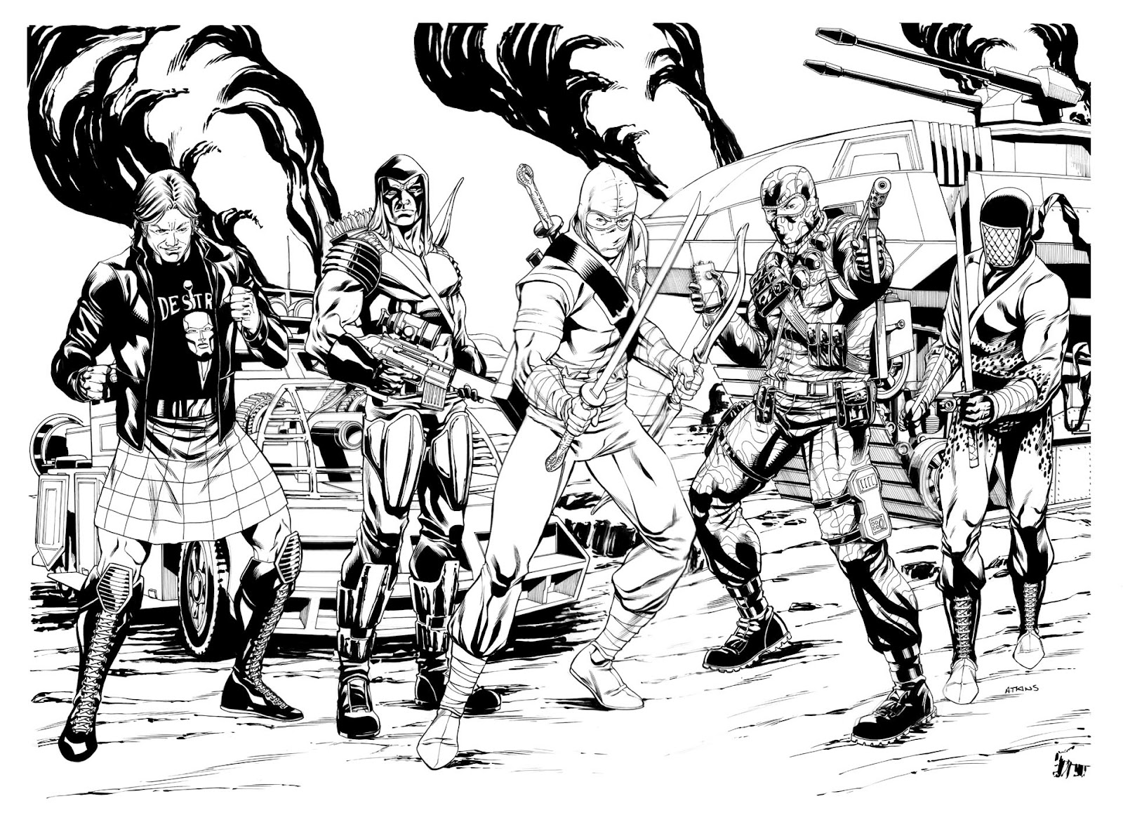 Here are the two commissions combined and the first GI JOE Commission colored by Simon Gough! My colorist on Snake Eyes for IDW Publishing. Simon is a beast! He did a fantastic job on this even with it's enormous size. The file size was 600 dpi and like I've said before over 4 ft wide. He said it even slowed his crazy awesome computer down, which has never happened before. He broke it up and just worked on the GI JOE half, as soon as he has the Cobra half done I'll spotlight that as well.