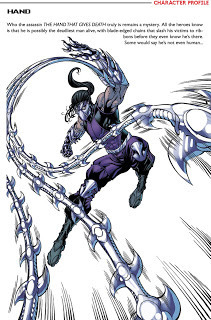 Hand as a character is the perfect antagonist to Adder, two sides of the same coin. Like most of the characters his design has gone through a few revisions and might go through a few more. He's a great character to draw though, lots of ways to show motion. For a character that will be doing all kinds of crazy martial arts action, it's something I'm really looking forward to working out!