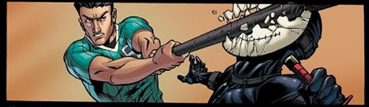 Adder is one of those characters that, as a comic fan, I want to have in my stories. He brings the stoic vigilante action, the grace under pressure, ice in his veins type character....then you realize he just a teenager. And an awkward one at that. So really how many of us were the most poplular kid in school, captain of the football, basketball, baseball teams? Well, Adder's character is certainly not that kid. Now imagine if you're in his shoes, AND you have the ability to kick the living crud out of 10 guys at once....Im pretty sure I know how I'd vent my high school frustrations. Pummeling criminals.