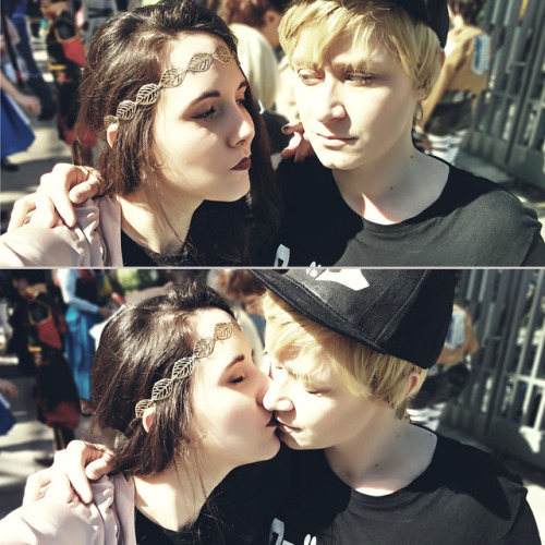 My girlfriend and me dressed up as a modern college AU version of Nina Zenik and Matthias Helvar by the amazing @lbardugo at the bookfair in Leipzig last weekend! ♥