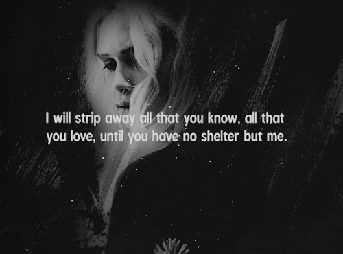 “There will be nothing left,” I whispered. “No,” he said gently as he folded me in his arms. He pressed a kiss to the top of my hair. “I will strip away all that you know, all that you love, until you have no shelter but me.” In grief, in horror, I let myself break apart.