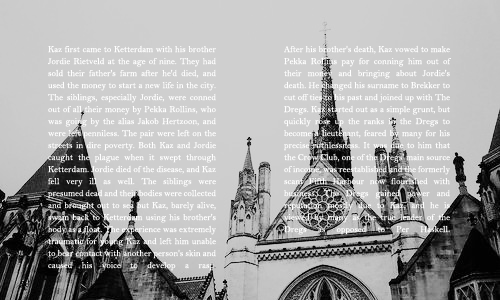 My mother is Ketterdam. She birthed me in the harbor. And my father is profit. I honor him daily.