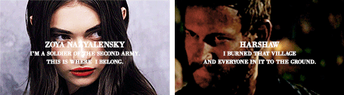 "I'M A SOLDIER OF THE SECOND ARMY. THIS IS WHERE I BELONG." "I BURNED THAT VILLAGE AND EVERYONE IN IT TO THE GROUND."