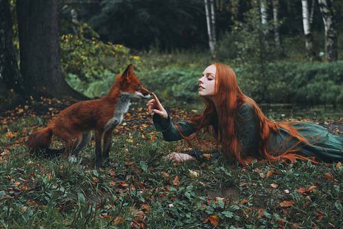 Fairytale Portrait Photos of Redheads with a Red Fox by Alexandra Bochkareva