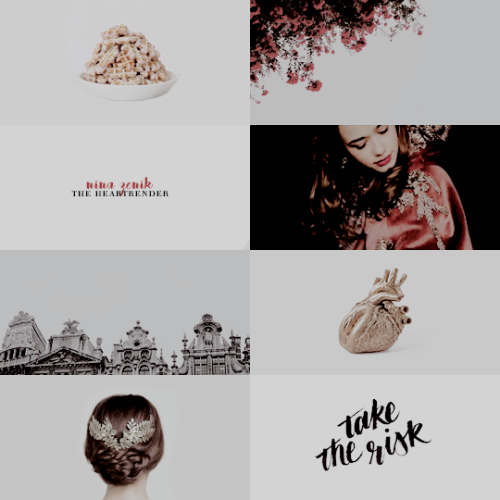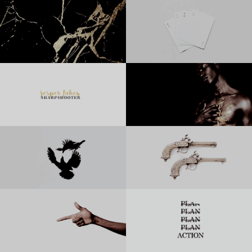 “The sun was out for once, and Inej had turned her face to it. Her eyes were shut, her oil-black lashes fanned out over her cheeks. The harbor wind had lifted her dark hair and for a moment Kaz was a boy again, sure there was magic in this world.“