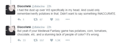Next time someone throws the “wouldn’t be realistic” argument at you to justify their racism, POTATOES AND DRAGONS.