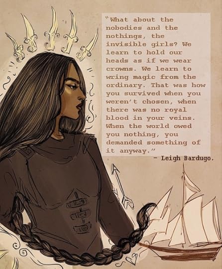 Here she finally is! It took me forever to actually read Six of Crows. I looked back on my instagram and found the day i started it in 2016, and it took until last week for me to actually commit. I’m so happy I did, but so sad I waited! This is my first Six of Crows piece with many to come. I already have a Kaz painting planned out that I will hopefully finish this week and post updates the week after. Stay tuned for Kaz, Matthias, Nina, Jesper, and Wylan! And send me anymore suggestions!