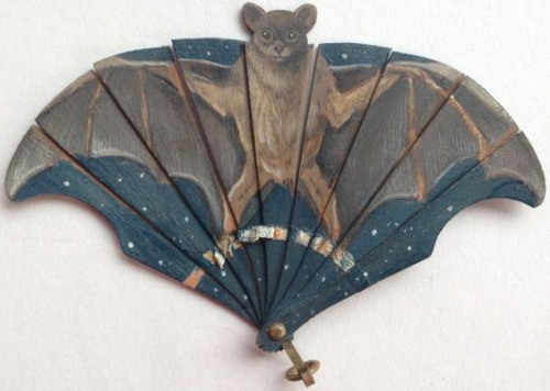 bat fan. On thin shaved wood. Circa 1900.