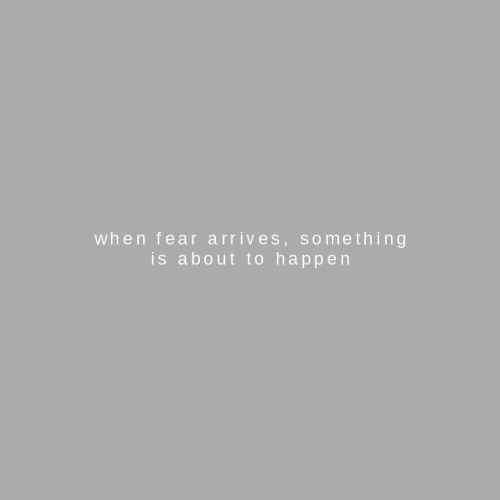 we meet fear. we greet the unexpected visitor and listen to what he has to tell us. when fear arrives, something is about to happen.