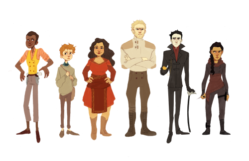 Drew the cast of the Six of Crows series by Leigh Bardugo! Plus a Wylan character sheet, because technically this is a self-directed school assignment. (And also because I adopted Wylan the second I met him.)