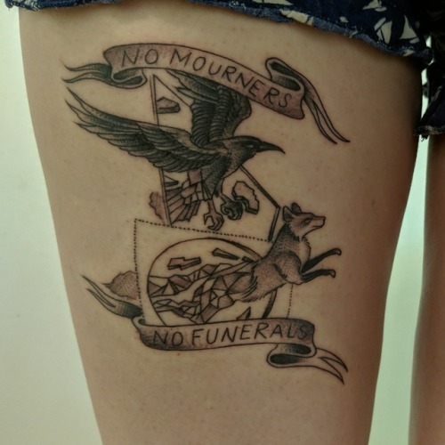 Last year I fell in love with the characters in @lbardugo ’s books, earlier this month I met her at #bookcon and tonight I got a tattoo with a crow for Kaz and The Dregs, and a fox for Nikolai
